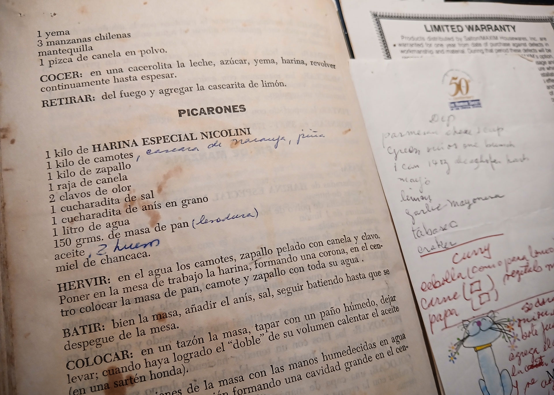 When we migrated to the states, my mom brought this cookbook with her and became one of her favorite possessions. The many dishes she prepared for the family, comes from this book. In the early years living here in the States, some recipes had to be modified because some ingredients were hard to acquire. This book and its pages show the many decades, the wear and tear, of being used in the many kitchens she cooked.